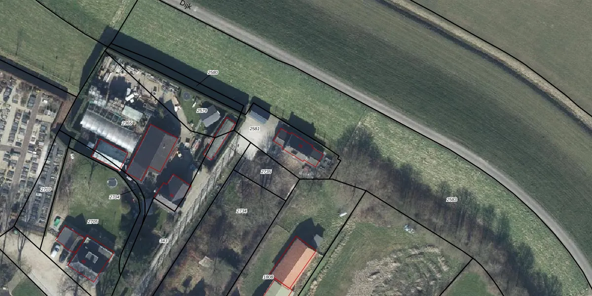 Dijk 35 is gelegen op kadastraal perceel WSN02B2581. Deze kadastrale aanduiding is uniek en wordt gebruikt door het Kadaster om eigendomsrechten en andere zakelijke rechten vast te leggen. Het perceel maakt onderdeel uit van de kadastrale gemeente Winssen.