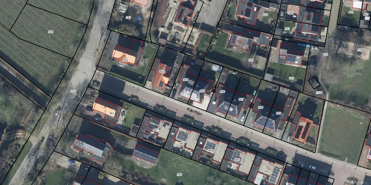 Gebruik de zoekbalk of klik op een perceel voor informatie over de adressen binnen dit perceel.
