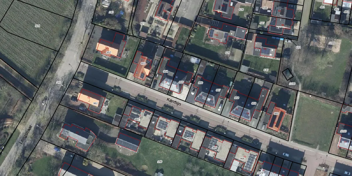Het perceel waarop Karmijn 5 staat heeft een oppervlakte van 275 m². Dit is een middelgroot perceel. De perceeloppervlakte wordt geregistreerd door het Kadaster. Gedetailleerde informatie over de maten van dit perceel kunt u vinden in het rapport Kadastrale kaart met maatvoering van Karmijn 5.