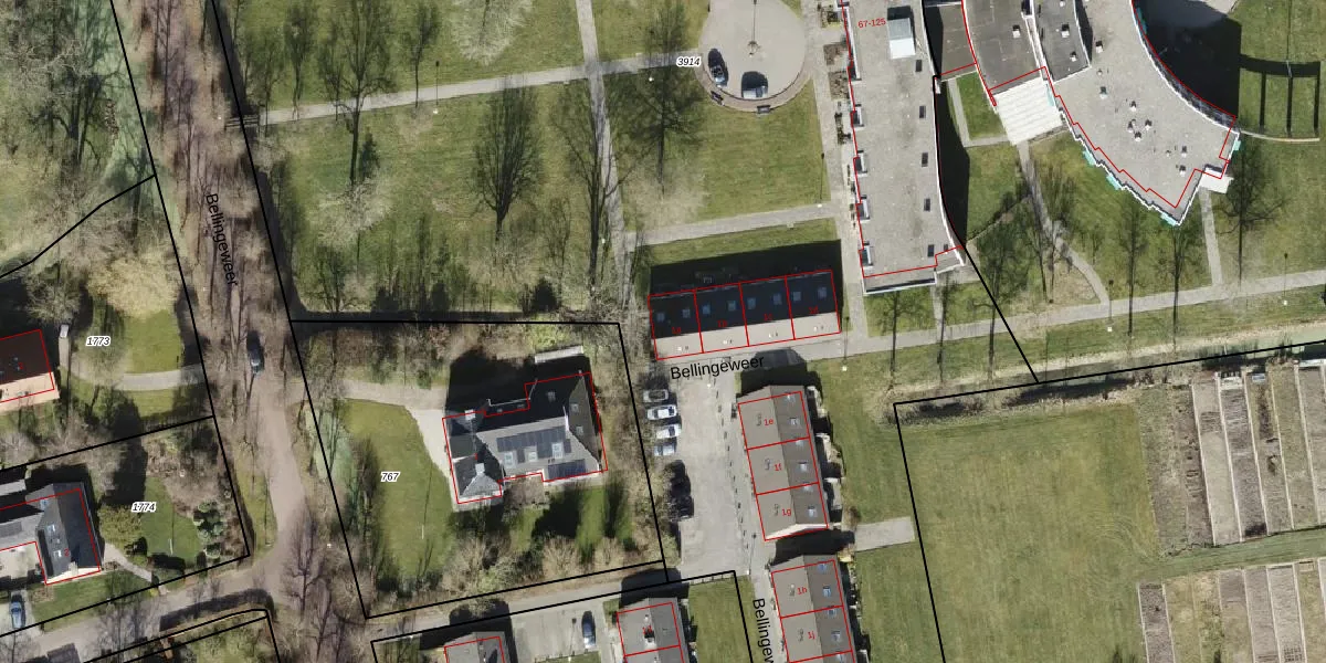 Het perceel waarop Bellingeweer 1-A staat heeft een oppervlakte van 9700 m². Dit is een zeer groot perceel. De perceeloppervlakte wordt geregistreerd door het Kadaster. Gedetailleerde informatie over de maten van dit perceel kunt u vinden in het rapport Kadastrale kaart met maatvoering van Bellingeweer 1-A.