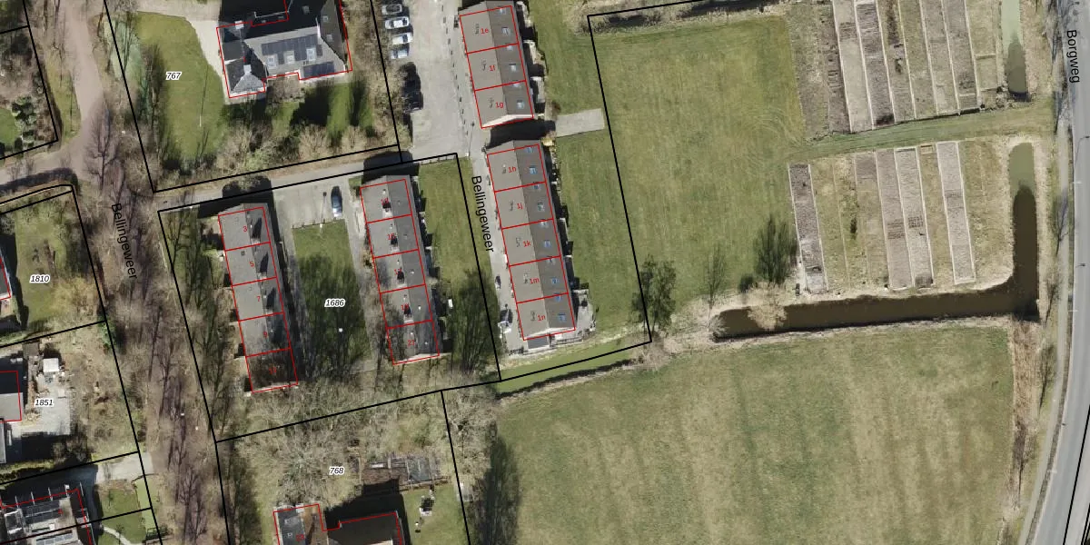 Het perceel waarop Bellingeweer 1-M staat heeft een oppervlakte van 9700 m². Dit is een zeer groot perceel. De perceeloppervlakte wordt geregistreerd door het Kadaster. Gedetailleerde informatie over de maten van dit perceel kunt u vinden in het rapport Kadastrale kaart met maatvoering van Bellingeweer 1-M.