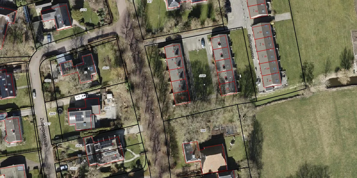 Het perceel waarop Bellingeweer 9 staat heeft een oppervlakte van 2355 m². Dit is een zeer groot perceel. De perceeloppervlakte wordt geregistreerd door het Kadaster. Gedetailleerde informatie over de maten van dit perceel kunt u vinden in het rapport Kadastrale kaart met maatvoering van Bellingeweer 9.