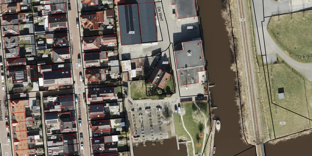 Het perceel waarop De Werf 10 staat heeft een oppervlakte van 360 m². Dit is een groot perceel. De perceeloppervlakte wordt geregistreerd door het Kadaster. Gedetailleerde informatie over de maten van dit perceel kunt u vinden in het rapport Kadastrale kaart met maatvoering van De Werf 10.