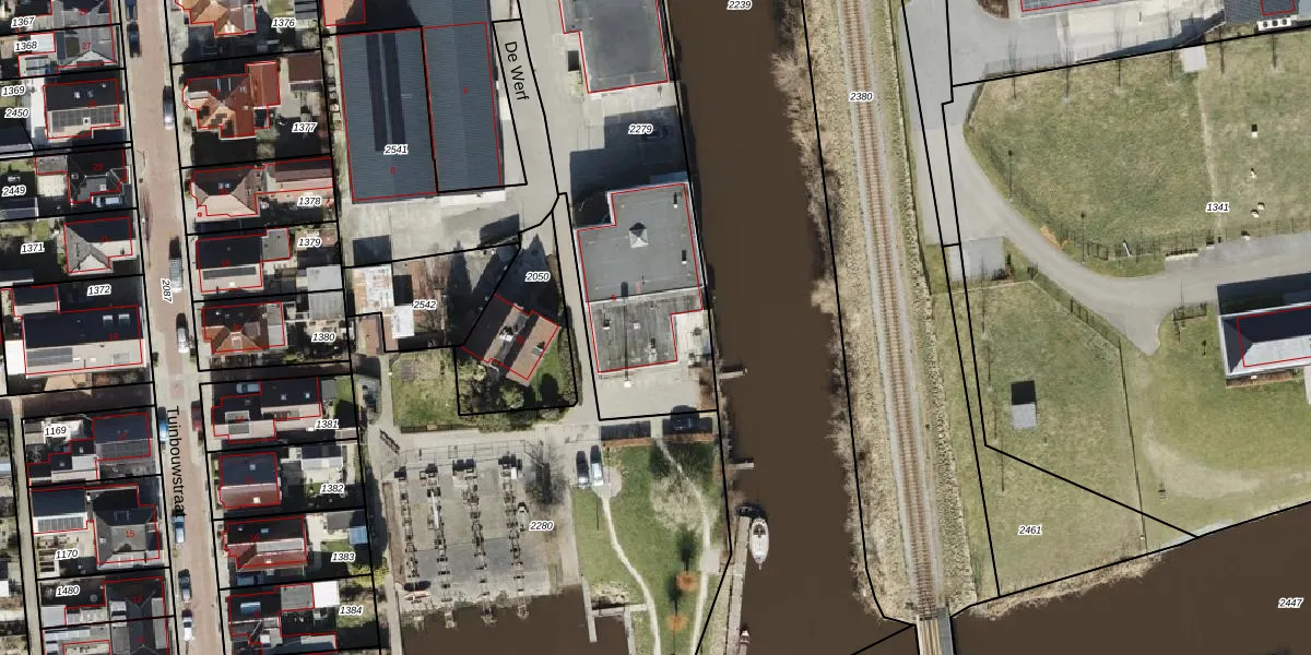 Het perceel waarop De Werf 5 staat heeft een oppervlakte van 2043 m². Dit is een zeer groot perceel. De perceeloppervlakte wordt geregistreerd door het Kadaster. Gedetailleerde informatie over de maten van dit perceel kunt u vinden in het rapport Kadastrale kaart met maatvoering van De Werf 5.