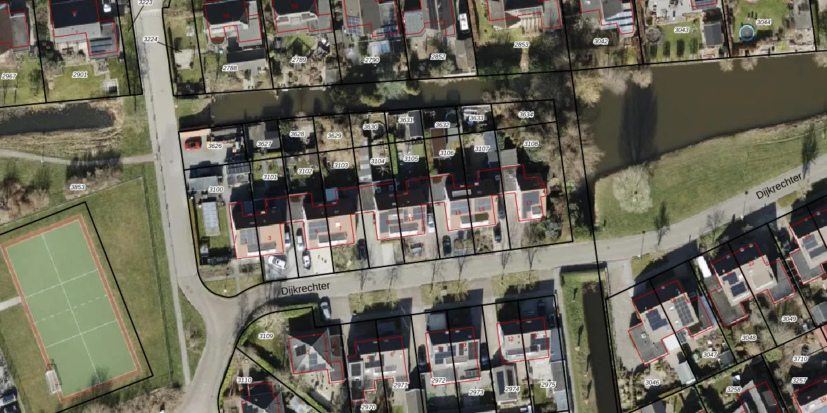 Het perceel waarop Dijkrechter 11 staat heeft een oppervlakte van 253 m². Dit is een middelgroot perceel. De perceeloppervlakte wordt geregistreerd door het Kadaster. Gedetailleerde informatie over de maten van dit perceel kunt u vinden in het rapport Kadastrale kaart met maatvoering van Dijkrechter 11.