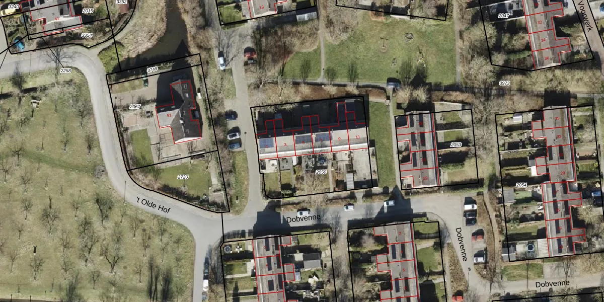 Het perceel waarop Dobvenne 5 staat heeft een oppervlakte van 1119 m². Dit is een zeer groot perceel. De perceeloppervlakte wordt geregistreerd door het Kadaster. Gedetailleerde informatie over de maten van dit perceel kunt u vinden in het rapport Kadastrale kaart met maatvoering van Dobvenne 5.