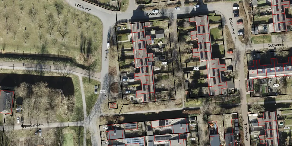 Het perceel waarop Hamrik 13 staat heeft een oppervlakte van 1985 m². Dit is een zeer groot perceel. De perceeloppervlakte wordt geregistreerd door het Kadaster. Gedetailleerde informatie over de maten van dit perceel kunt u vinden in het rapport Kadastrale kaart met maatvoering van Hamrik 13.