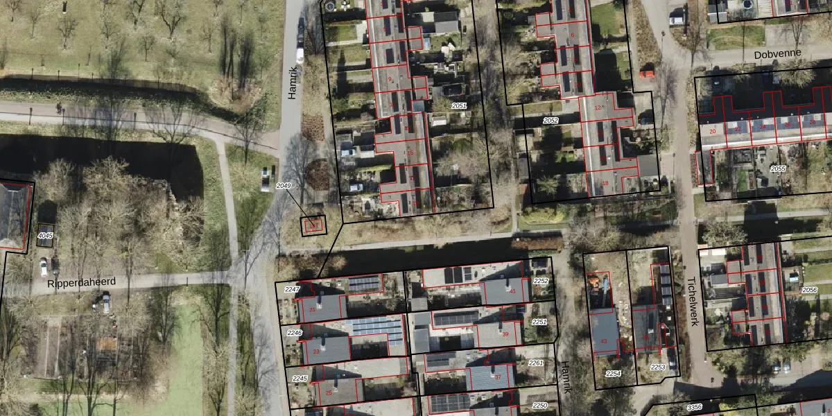Het perceel waarop Hamrik 19 staat heeft een oppervlakte van 1985 m². Dit is een zeer groot perceel. De perceeloppervlakte wordt geregistreerd door het Kadaster. Gedetailleerde informatie over de maten van dit perceel kunt u vinden in het rapport Kadastrale kaart met maatvoering van Hamrik 19.