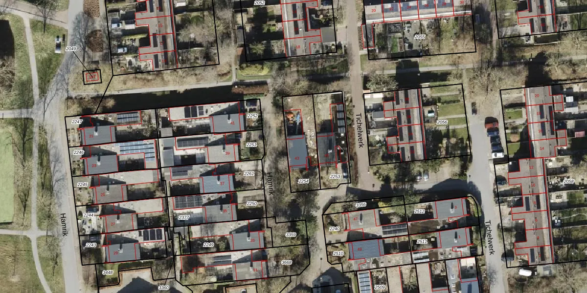 Het perceel waarop Hamrik 43 staat heeft een oppervlakte van 337 m². Dit is een groot perceel. De perceeloppervlakte wordt geregistreerd door het Kadaster. Gedetailleerde informatie over de maten van dit perceel kunt u vinden in het rapport Kadastrale kaart met maatvoering van Hamrik 43.