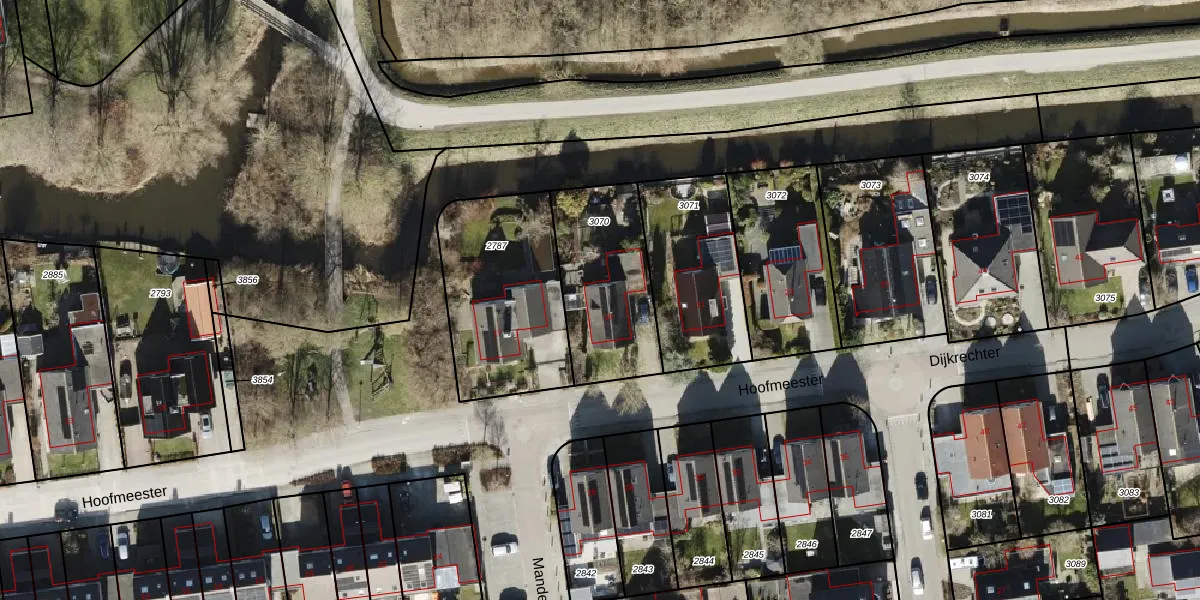Het perceel waarop Hoofmeester 19 staat heeft een oppervlakte van 480 m². Dit is een groot perceel. De perceeloppervlakte wordt geregistreerd door het Kadaster. Gedetailleerde informatie over de maten van dit perceel kunt u vinden in het rapport Kadastrale kaart met maatvoering van Hoofmeester 19.