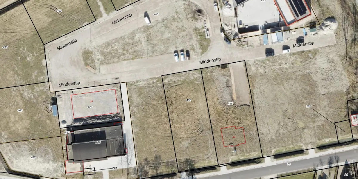 Het perceel waarop Middenstip 18 staat heeft een oppervlakte van 1225 m². Dit is een zeer groot perceel. De perceeloppervlakte wordt geregistreerd door het Kadaster. Gedetailleerde informatie over de maten van dit perceel kunt u vinden in het rapport Kadastrale kaart met maatvoering van Middenstip 18.