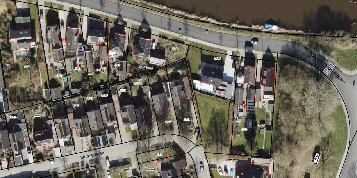Het perceel waarop Munsterweg 35 staat heeft een oppervlakte van 528 m². Dit is een groot perceel. De perceeloppervlakte wordt geregistreerd door het Kadaster. Gedetailleerde informatie over de maten van dit perceel kunt u vinden in het rapport Kadastrale kaart met maatvoering van Munsterweg 35.