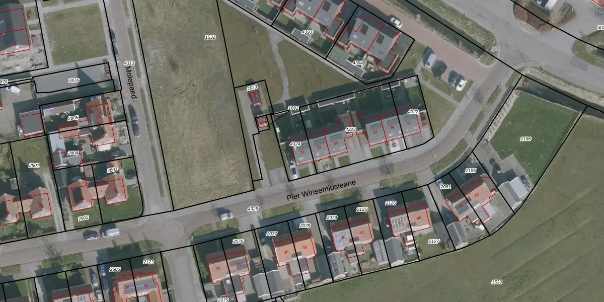 Pier Winsemiusleane 31 is gelegen op kadastraal perceel BAA02A4324. Deze kadastrale aanduiding is uniek en wordt gebruikt door het Kadaster om eigendomsrechten en andere zakelijke rechten vast te leggen. Het perceel maakt onderdeel uit van de kadastrale gemeente Baard.