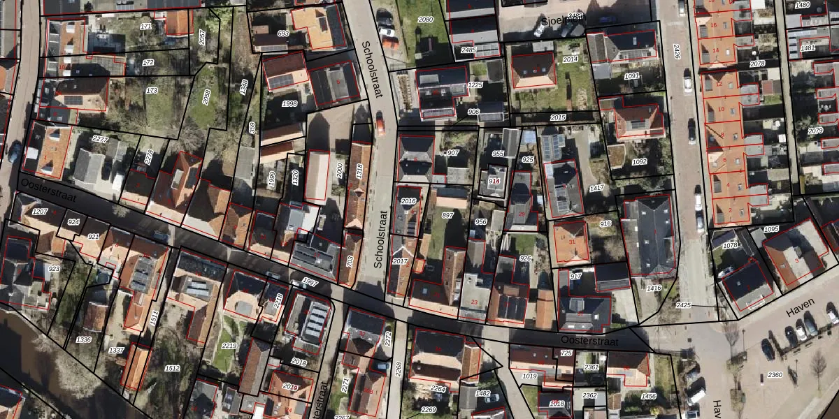 Gebruik de zoekbalk of klik op een perceel voor informatie over de adressen binnen dit perceel.