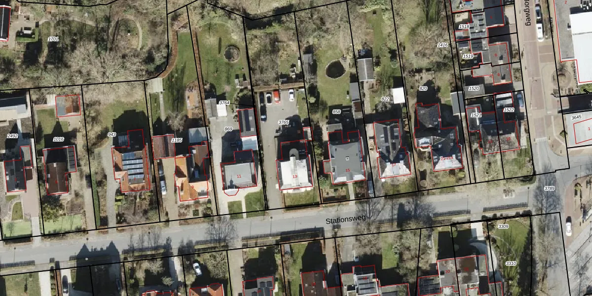 Het perceel waarop Stationsweg 13 staat heeft een oppervlakte van 1165 m². Dit is een zeer groot perceel. De perceeloppervlakte wordt geregistreerd door het Kadaster. Gedetailleerde informatie over de maten van dit perceel kunt u vinden in het rapport Kadastrale kaart met maatvoering van Stationsweg 13.