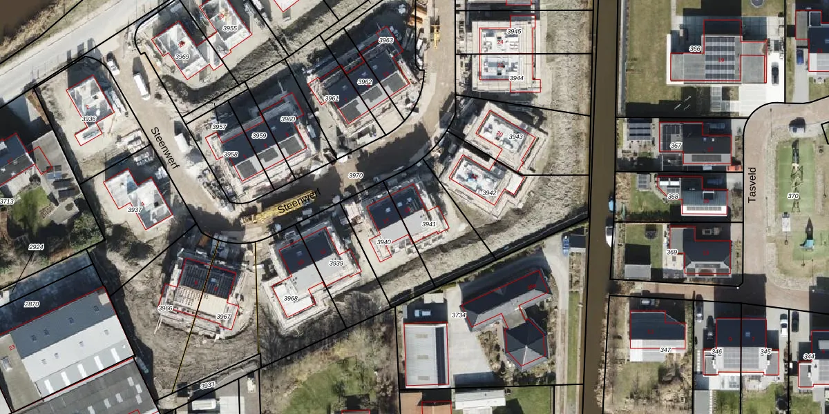 Het perceel waarop Steenwerf 16 staat heeft een oppervlakte van 394 m². Dit is een groot perceel. De perceeloppervlakte wordt geregistreerd door het Kadaster. Gedetailleerde informatie over de maten van dit perceel kunt u vinden in het rapport Kadastrale kaart met maatvoering van Steenwerf 16.