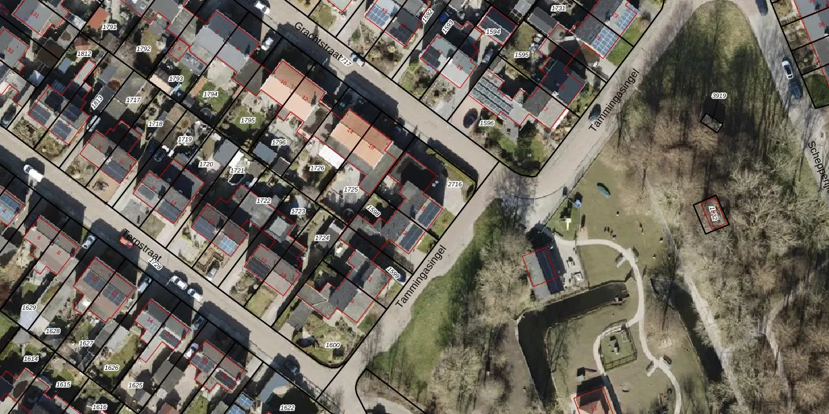 Het perceel waarop Tammingasingel 15 staat heeft een oppervlakte van 326 m². Dit is een groot perceel. De perceeloppervlakte wordt geregistreerd door het Kadaster. Gedetailleerde informatie over de maten van dit perceel kunt u vinden in het rapport Kadastrale kaart met maatvoering van Tammingasingel 15.