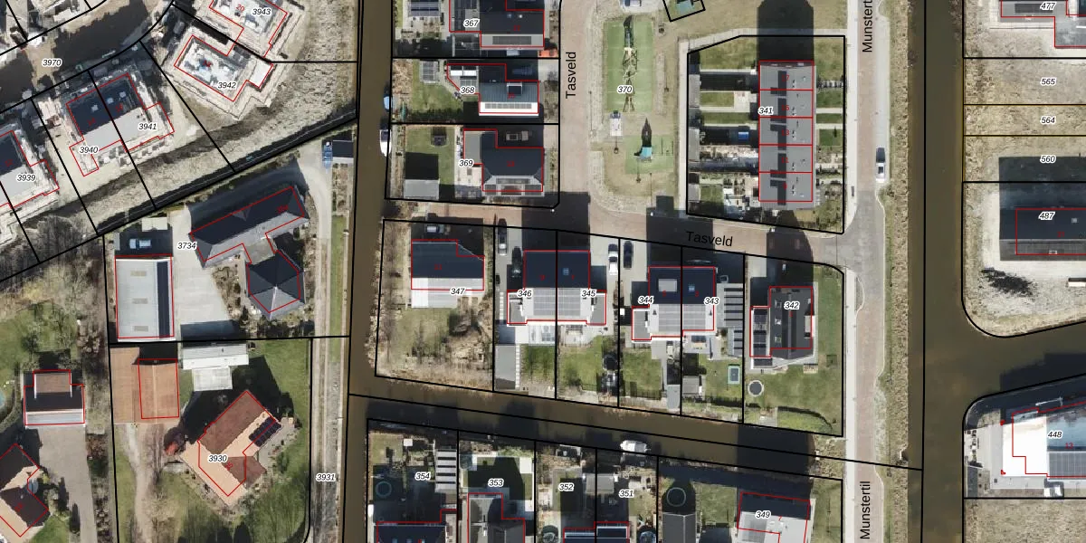 Het perceel waarop Tasveld 9 staat heeft een oppervlakte van 355 m². Dit is een groot perceel. De perceeloppervlakte wordt geregistreerd door het Kadaster. Gedetailleerde informatie over de maten van dit perceel kunt u vinden in het rapport Kadastrale kaart met maatvoering van Tasveld 9.