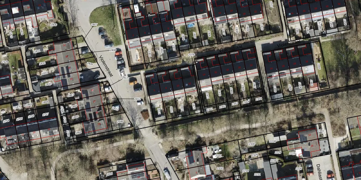 Het perceel waarop Violenstraat 10 staat heeft een oppervlakte van 177 m². Dit is een middelgroot perceel. De perceeloppervlakte wordt geregistreerd door het Kadaster. Gedetailleerde informatie over de maten van dit perceel kunt u vinden in het rapport Kadastrale kaart met maatvoering van Violenstraat 10.