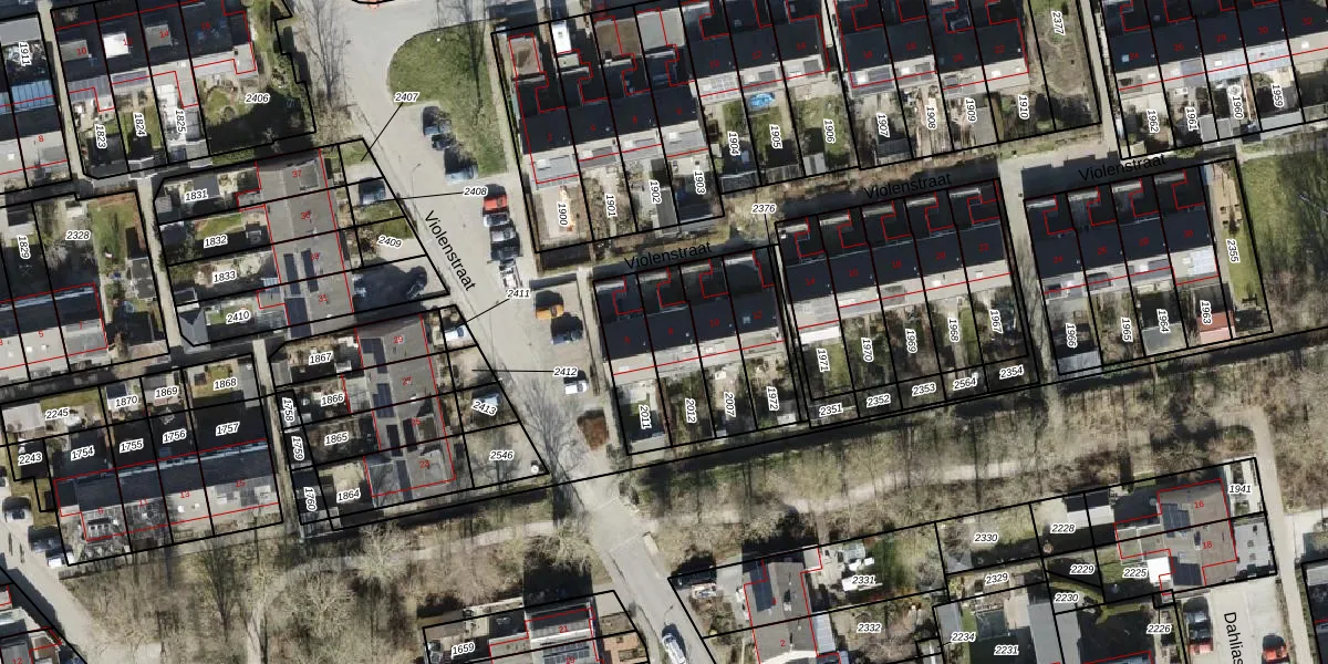 Het perceel waarop Violenstraat 8 staat heeft een oppervlakte van 177 m². Dit is een middelgroot perceel. De perceeloppervlakte wordt geregistreerd door het Kadaster. Gedetailleerde informatie over de maten van dit perceel kunt u vinden in het rapport Kadastrale kaart met maatvoering van Violenstraat 8.