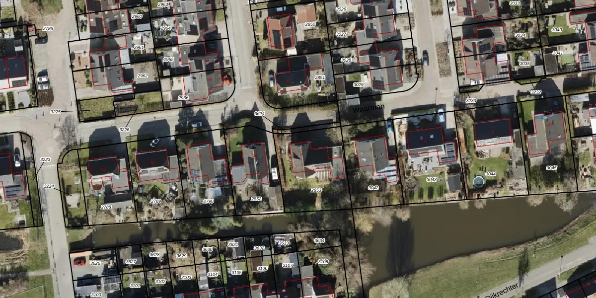 Het perceel waarop Waarman 2 staat heeft een oppervlakte van 614 m². Dit is een groot perceel. De perceeloppervlakte wordt geregistreerd door het Kadaster. Gedetailleerde informatie over de maten van dit perceel kunt u vinden in het rapport Kadastrale kaart met maatvoering van Waarman 2.