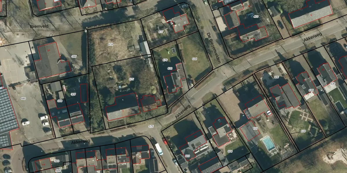 Gebruik de zoekbalk of klik op een perceel voor informatie over de adressen binnen dit perceel.