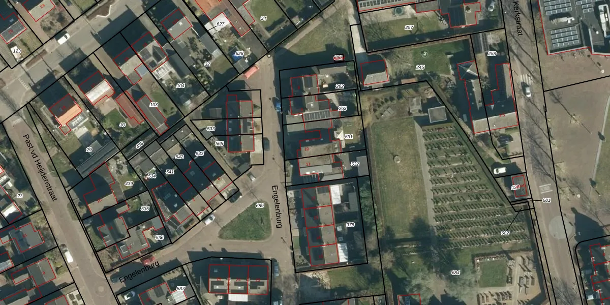 Engelenburg 10 is gelegen op kadastraal perceel VSM01H531. Deze kadastrale aanduiding is uniek en wordt gebruikt door het Kadaster om eigendomsrechten en andere zakelijke rechten vast te leggen. Het perceel maakt onderdeel uit van de kadastrale gemeente Vessem.