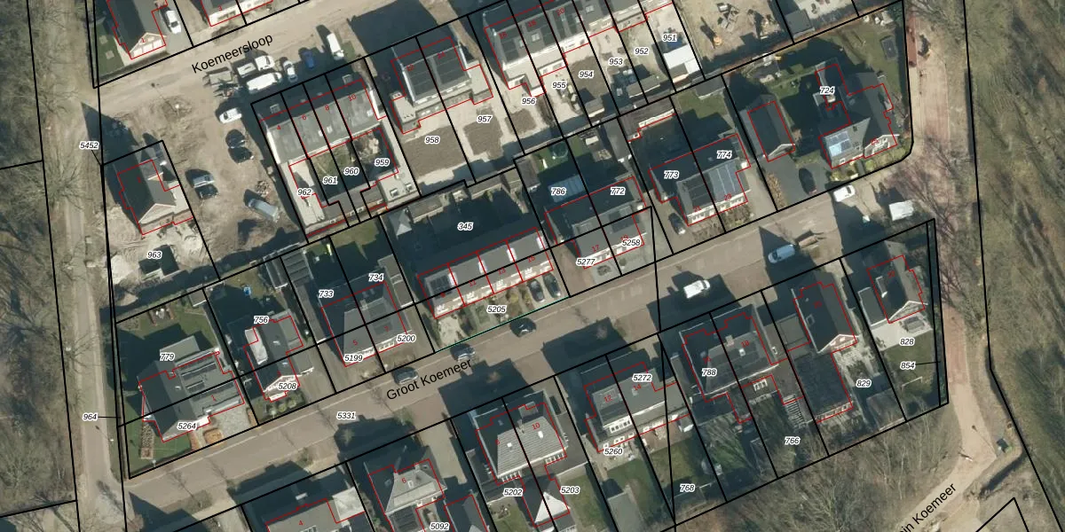 Het perceel waarop Groot Koemeer 15 staat heeft een oppervlakte van 270 m². Dit is een middelgroot perceel. De perceeloppervlakte wordt geregistreerd door het Kadaster. Gedetailleerde informatie over de maten van dit perceel kunt u vinden in het rapport Kadastrale kaart met maatvoering van Groot Koemeer 15.