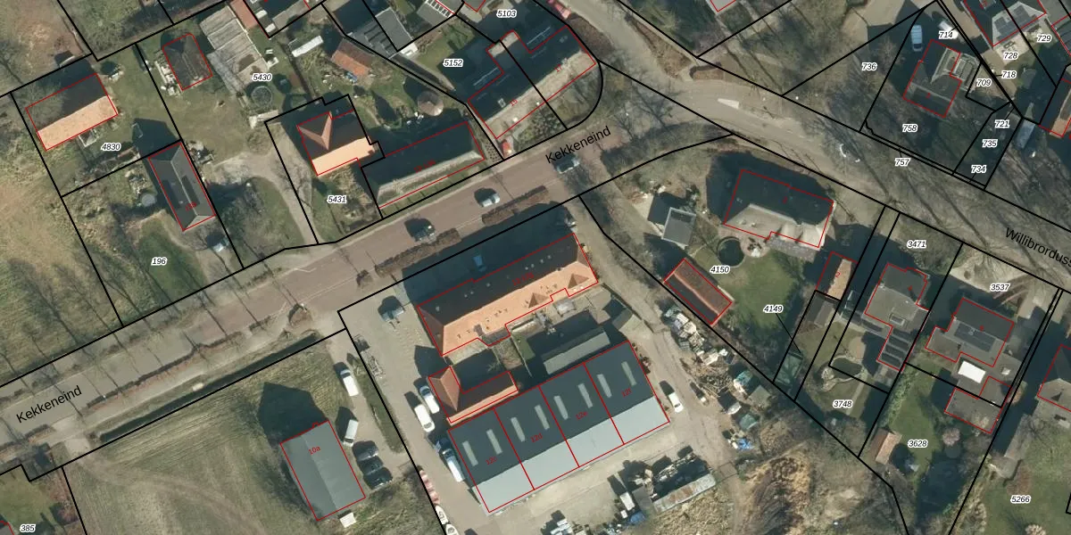 Het perceel waarop Kekkeneind 12 staat heeft een oppervlakte van 1,7 ha. Dit is een zeer groot perceel. De perceeloppervlakte wordt geregistreerd door het Kadaster. Gedetailleerde informatie over de maten van dit perceel kunt u vinden in het rapport Kadastrale kaart met maatvoering van Kekkeneind 12.