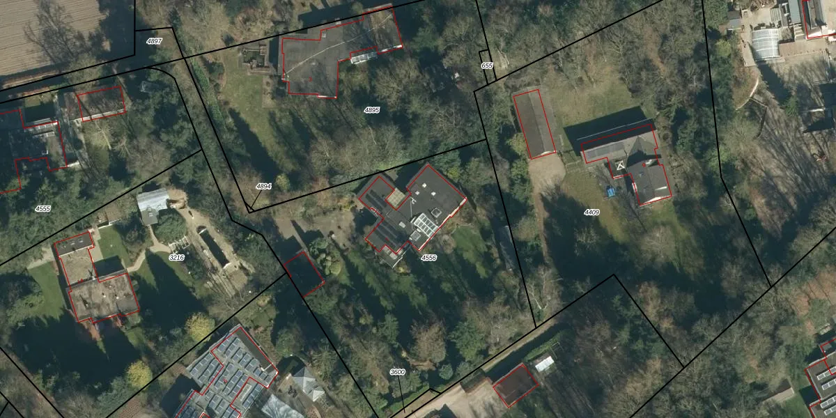 Het perceel waarop Kerkheide 7 staat heeft een oppervlakte van 2959 m². Dit is een zeer groot perceel. De perceeloppervlakte wordt geregistreerd door het Kadaster. Gedetailleerde informatie over de maten van dit perceel kunt u vinden in het rapport Kadastrale kaart met maatvoering van Kerkheide 7.