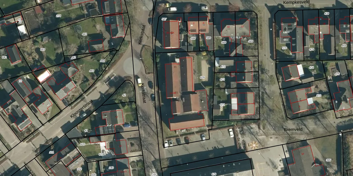 Kerkstraat 32 is gelegen op kadastraal perceel VSM01H629. Deze kadastrale aanduiding is uniek en wordt gebruikt door het Kadaster om eigendomsrechten en andere zakelijke rechten vast te leggen. Het perceel maakt onderdeel uit van de kadastrale gemeente Vessem.
