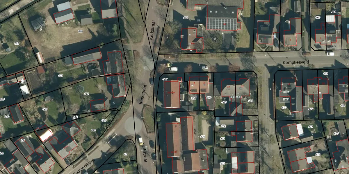Kerkstraat 44 is gelegen op kadastraal perceel VSM01H587. Deze kadastrale aanduiding is uniek en wordt gebruikt door het Kadaster om eigendomsrechten en andere zakelijke rechten vast te leggen. Het perceel maakt onderdeel uit van de kadastrale gemeente Vessem.