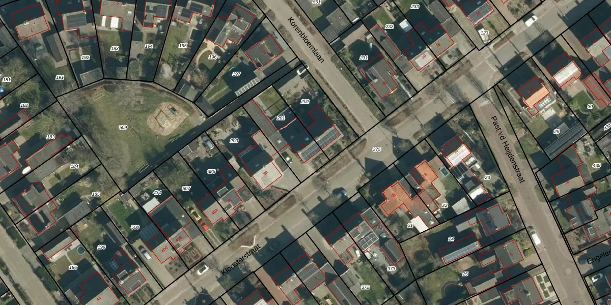 Het perceel waarop Kloosterstraat 36 staat heeft een oppervlakte van 382 m². Dit is een groot perceel. De perceeloppervlakte wordt geregistreerd door het Kadaster. Gedetailleerde informatie over de maten van dit perceel kunt u vinden in het rapport Kadastrale kaart met maatvoering van Kloosterstraat 36.