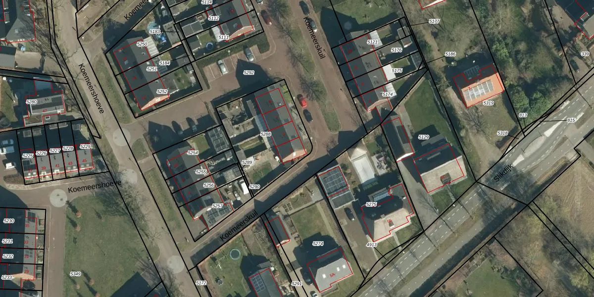 Het perceel waarop Koemeerskuil 3 staat heeft een oppervlakte van 726 m². Dit is een groot perceel. De perceeloppervlakte wordt geregistreerd door het Kadaster. Gedetailleerde informatie over de maten van dit perceel kunt u vinden in het rapport Kadastrale kaart met maatvoering van Koemeerskuil 3.