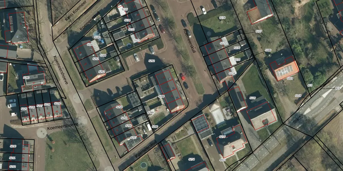Het perceel waarop Koemeerskuil 7 staat heeft een oppervlakte van 726 m². Dit is een groot perceel. De perceeloppervlakte wordt geregistreerd door het Kadaster. Gedetailleerde informatie over de maten van dit perceel kunt u vinden in het rapport Kadastrale kaart met maatvoering van Koemeerskuil 7.