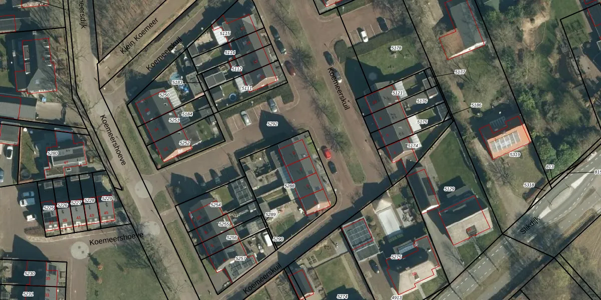 Het perceel waarop Koemeerskuil 9 staat heeft een oppervlakte van 726 m². Dit is een groot perceel. De perceeloppervlakte wordt geregistreerd door het Kadaster. Gedetailleerde informatie over de maten van dit perceel kunt u vinden in het rapport Kadastrale kaart met maatvoering van Koemeerskuil 9.