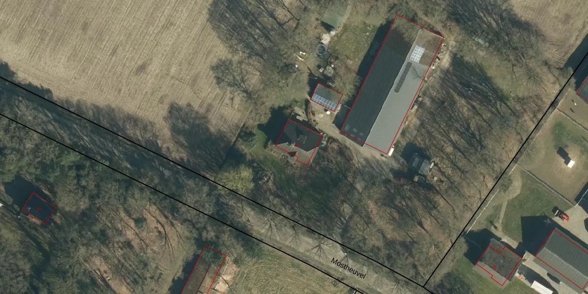 Het perceel waarop Mostheuvel 30 staat heeft een oppervlakte van 4,5 ha. Dit is een zeer groot perceel. De perceeloppervlakte wordt geregistreerd door het Kadaster. Gedetailleerde informatie over de maten van dit perceel kunt u vinden in het rapport Kadastrale kaart met maatvoering van Mostheuvel 30.