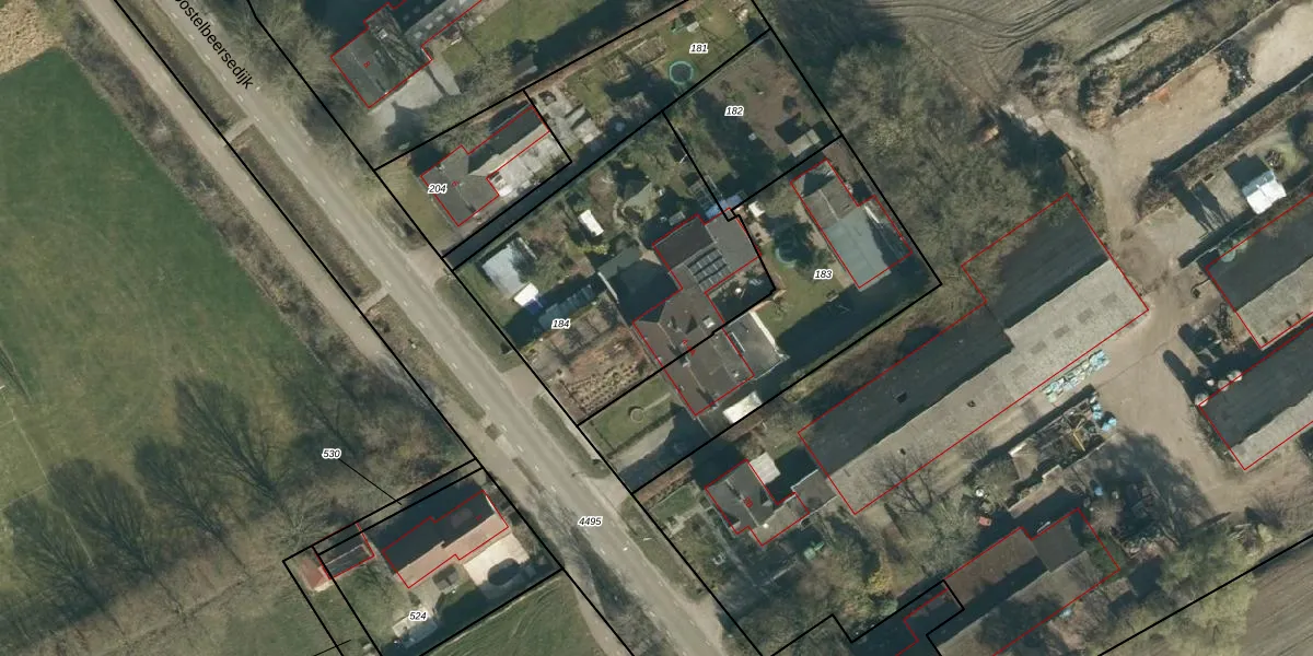 Het perceel waarop Oostelbeersedijk 4-A staat heeft een oppervlakte van 1235 m². Dit is een zeer groot perceel. De perceeloppervlakte wordt geregistreerd door het Kadaster. Gedetailleerde informatie over de maten van dit perceel kunt u vinden in het rapport Kadastrale kaart met maatvoering van Oostelbeersedijk 4-A.
