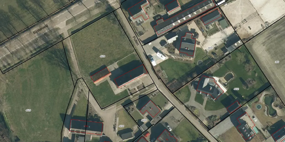 Het perceel waarop Pullen 2 staat heeft een oppervlakte van 2414 m². Dit is een zeer groot perceel. De perceeloppervlakte wordt geregistreerd door het Kadaster. Gedetailleerde informatie over de maten van dit perceel kunt u vinden in het rapport Kadastrale kaart met maatvoering van Pullen 2.