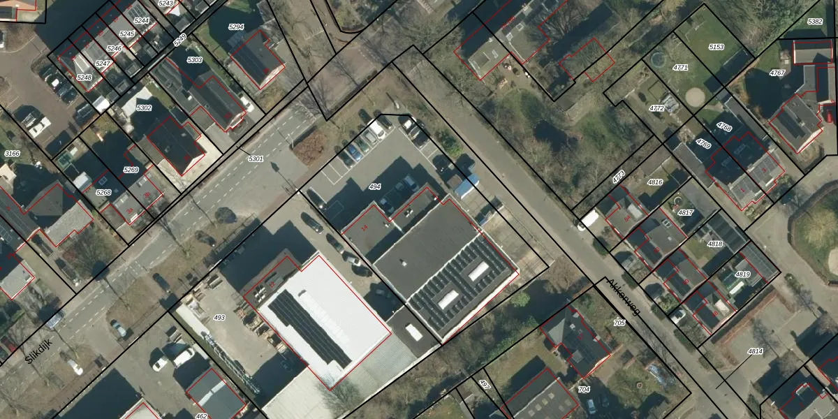 Het perceel waarop Slikdijk 14 staat heeft een oppervlakte van 1630 m². Dit is een zeer groot perceel. De perceeloppervlakte wordt geregistreerd door het Kadaster. Gedetailleerde informatie over de maten van dit perceel kunt u vinden in het rapport Kadastrale kaart met maatvoering van Slikdijk 14.