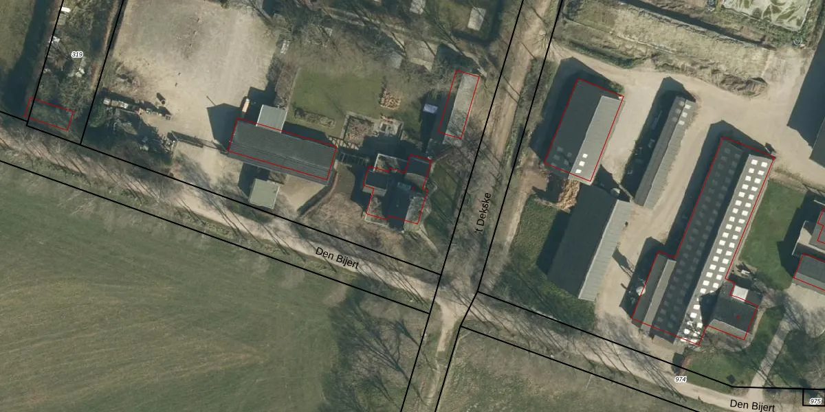 Het perceel waarop 't Dekske 1 staat heeft een oppervlakte van 1,6 ha. Dit is een zeer groot perceel. De perceeloppervlakte wordt geregistreerd door het Kadaster. Gedetailleerde informatie over de maten van dit perceel kunt u vinden in het rapport Kadastrale kaart met maatvoering van 't Dekske 1.