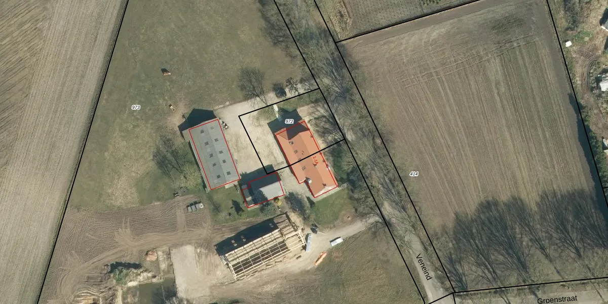 Het perceel waarop Veneind 1-A staat heeft een oppervlakte van 565 m². Dit is een groot perceel. De perceeloppervlakte wordt geregistreerd door het Kadaster. Gedetailleerde informatie over de maten van dit perceel kunt u vinden in het rapport Kadastrale kaart met maatvoering van Veneind 1-A.