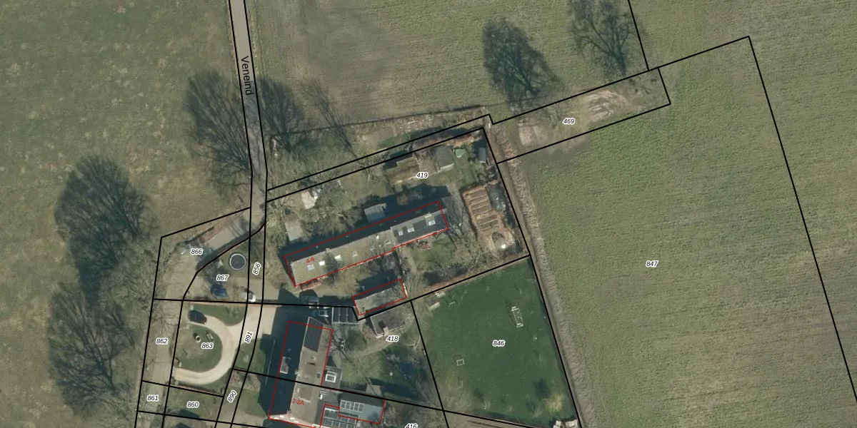 Veneind 6 is gelegen op kadastraal perceel ESL00O419. Deze kadastrale aanduiding is uniek en wordt gebruikt door het Kadaster om eigendomsrechten en andere zakelijke rechten vast te leggen. Het perceel maakt onderdeel uit van de kadastrale gemeente Eersel.
