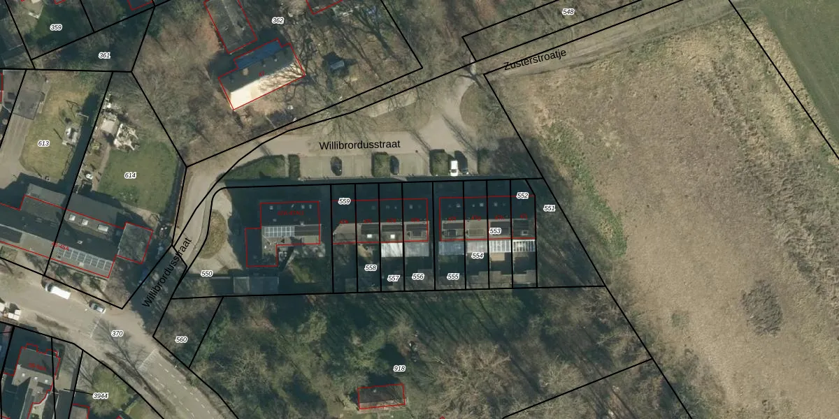 Gebruik de zoekbalk of klik op een perceel voor informatie over de adressen binnen dit perceel.
