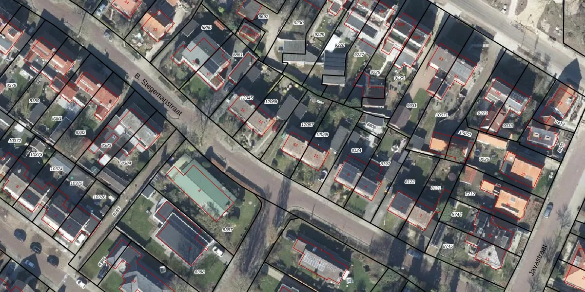 Het perceel waarop B. Stegemanstraat 12 staat heeft een oppervlakte van 320 m². Dit is een groot perceel. De perceeloppervlakte wordt geregistreerd door het Kadaster. Gedetailleerde informatie over de maten van dit perceel kunt u vinden in het rapport Kadastrale kaart met maatvoering van B. Stegemanstraat 12.