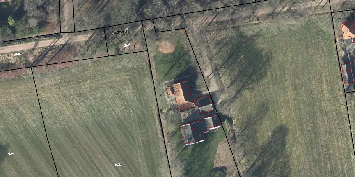 Het perceel waarop Badweg 8 staat heeft een oppervlakte van 3785 m². Dit is een zeer groot perceel. De perceeloppervlakte wordt geregistreerd door het Kadaster. Gedetailleerde informatie over de maten van dit perceel kunt u vinden in het rapport Kadastrale kaart met maatvoering van Badweg 8.