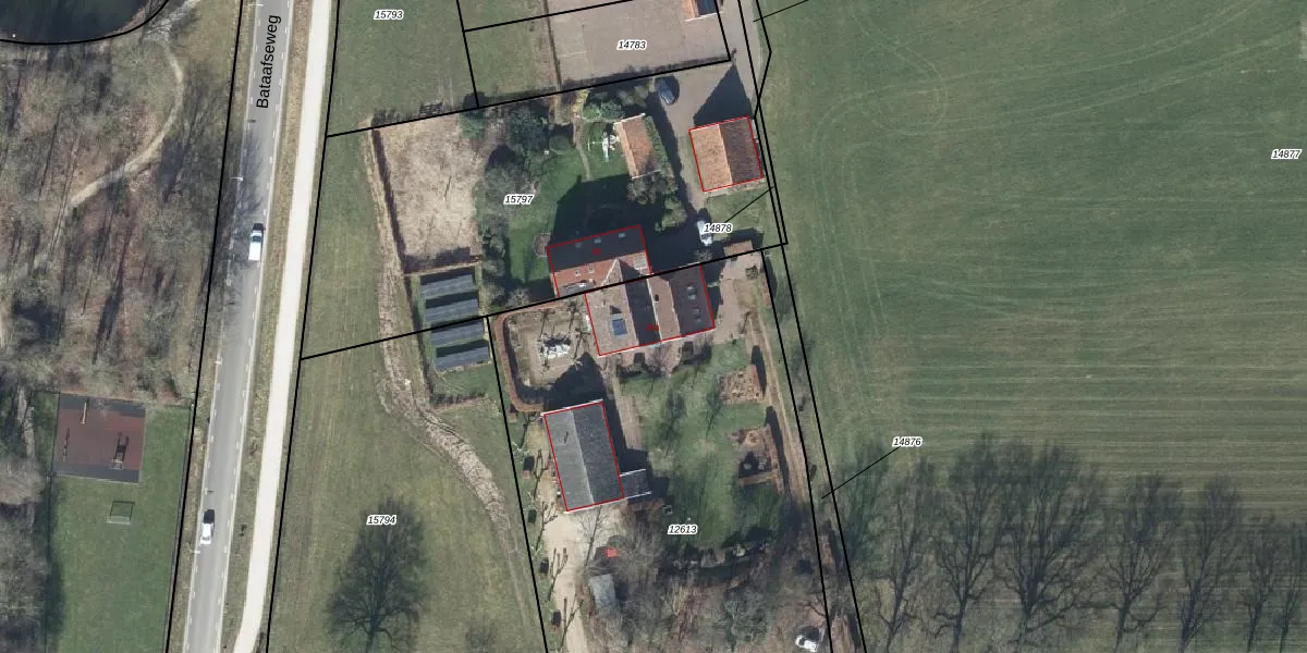 Het perceel waarop Bataafseweg 18-a staat heeft een oppervlakte van 2710 m². Dit is een zeer groot perceel. De perceeloppervlakte wordt geregistreerd door het Kadaster. Gedetailleerde informatie over de maten van dit perceel kunt u vinden in het rapport Kadastrale kaart met maatvoering van Bataafseweg 18-a.