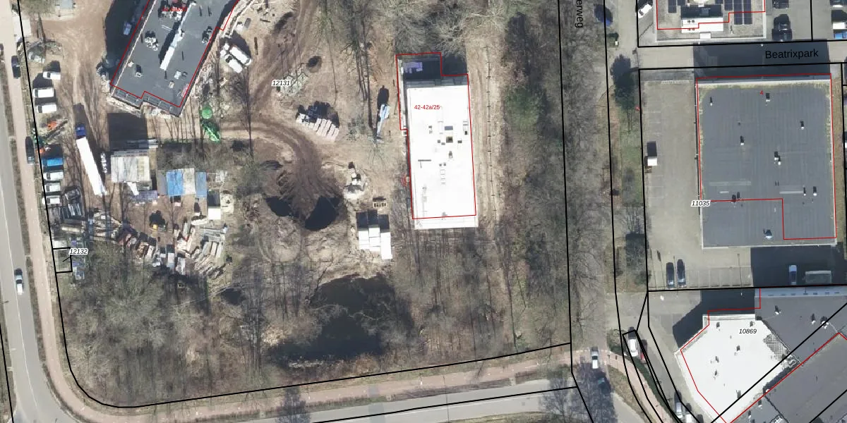 Het perceel waarop Beatrixpark 42-a-6 staat heeft een oppervlakte van 1,7 ha. Dit is een zeer groot perceel. De perceeloppervlakte wordt geregistreerd door het Kadaster. Gedetailleerde informatie over de maten van dit perceel kunt u vinden in het rapport Kadastrale kaart met maatvoering van Beatrixpark 42-a-6.