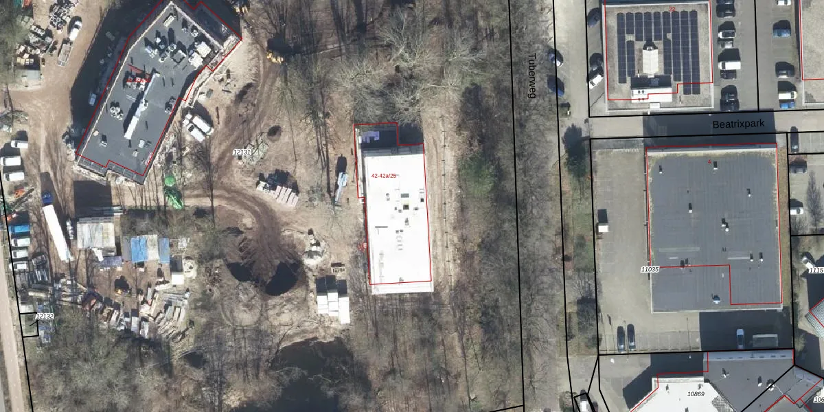 Het perceel waarop Beatrixpark 42-a-11 staat heeft een oppervlakte van 1,7 ha. Dit is een zeer groot perceel. De perceeloppervlakte wordt geregistreerd door het Kadaster. Gedetailleerde informatie over de maten van dit perceel kunt u vinden in het rapport Kadastrale kaart met maatvoering van Beatrixpark 42-a-11.