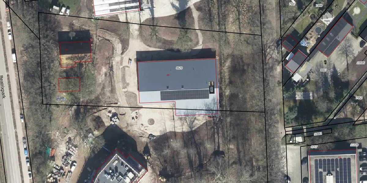Het perceel waarop Beatrixpark 46 staat heeft een oppervlakte van 5618 m². Dit is een zeer groot perceel. De perceeloppervlakte wordt geregistreerd door het Kadaster. Gedetailleerde informatie over de maten van dit perceel kunt u vinden in het rapport Kadastrale kaart met maatvoering van Beatrixpark 46.